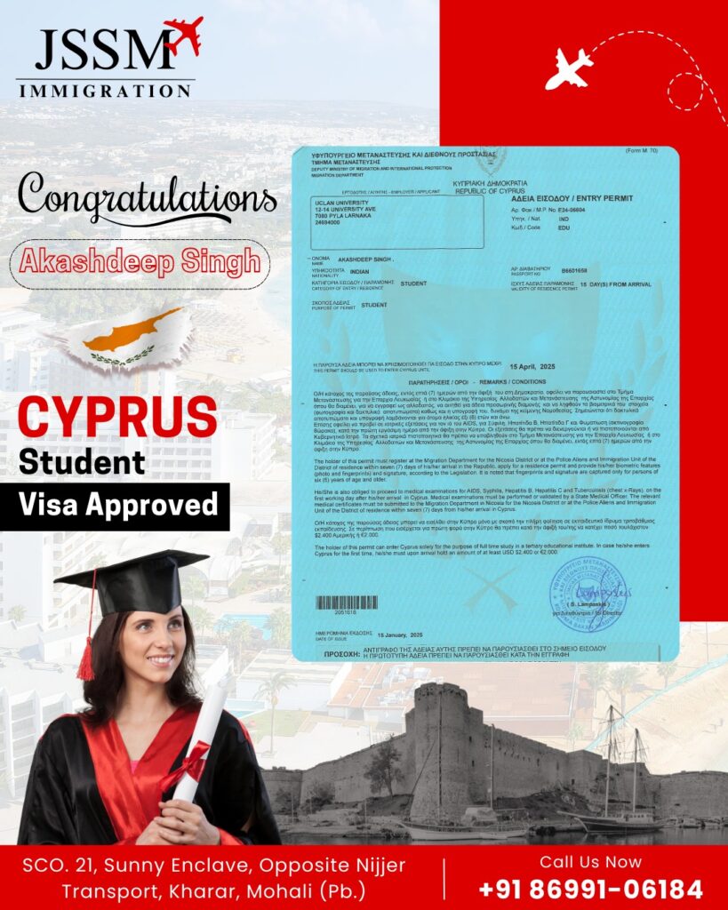 Akashdeep has been granted a Cyprus Student Visa and is all set to embark on his academic journey at UCLan University, Larnaka, Cyprus. This marks a significant step in his educational aspirations, and we are proud to have played a role in turning his dream into reality.